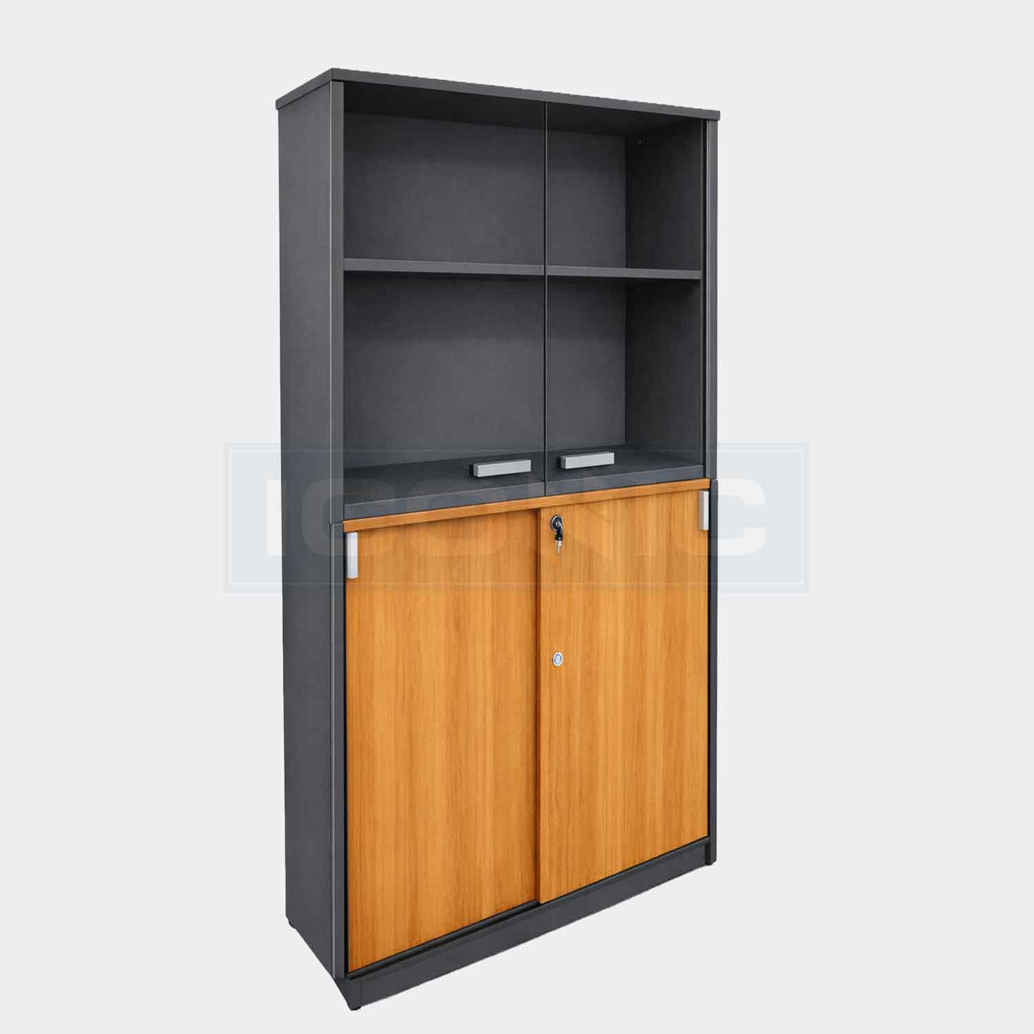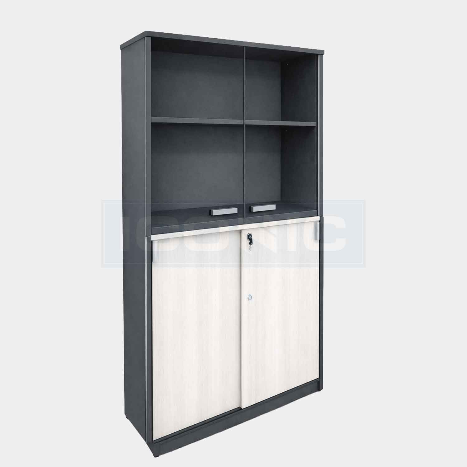 ตู้เอกสารไม้บานผสม (บนบานเปิดกระจก-ล่างบานเลื่อน) รุ่น 2CM-853