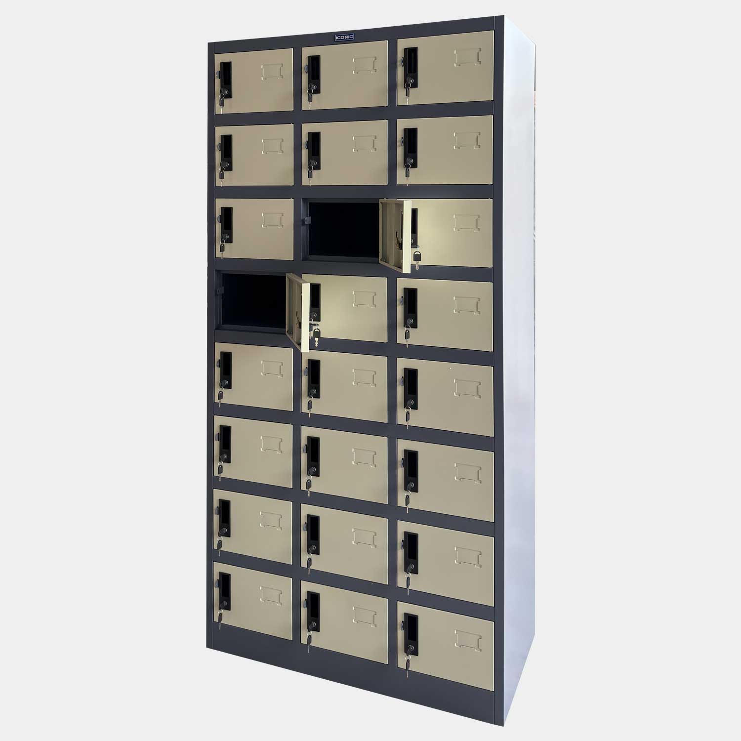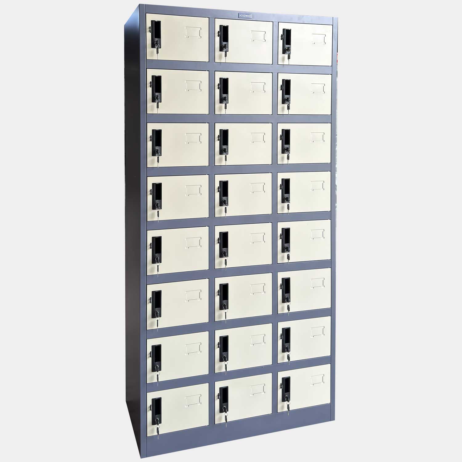 ICONIC CLK-24 ตู้ล็อคเกอร์เหล็ก 24 ประตู ไอคอนิค รุ่น CLK-24 รุ่นนี้เหล็กพ่นสีหนาพิเศษ 0.6 มม. แข็งแรง ทนทาน ไว้ใจได้ เพราะเราคัดสรรวัตถุดิบคุณภาพที่สุดมาให้ลูกค้าทุกท่าน